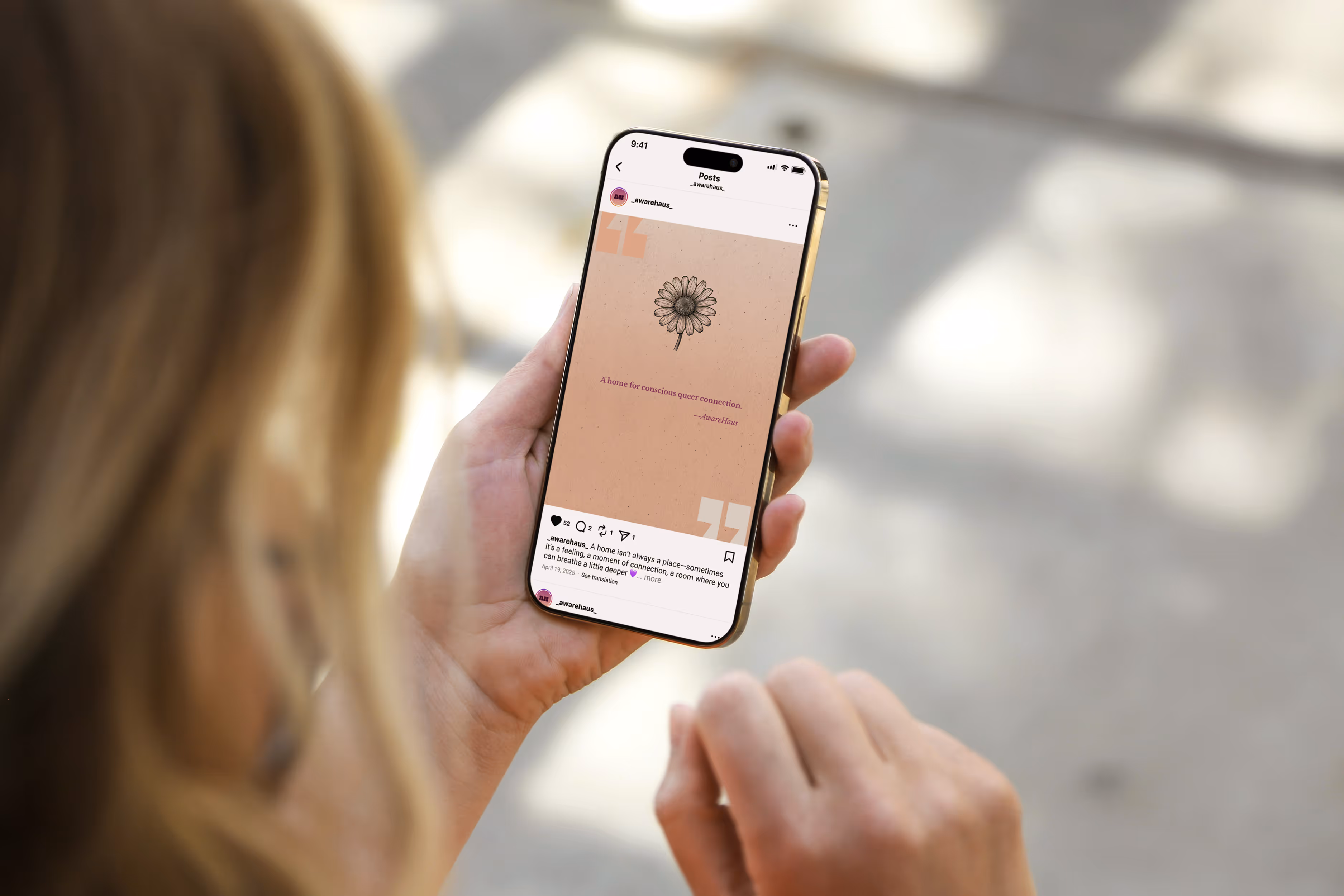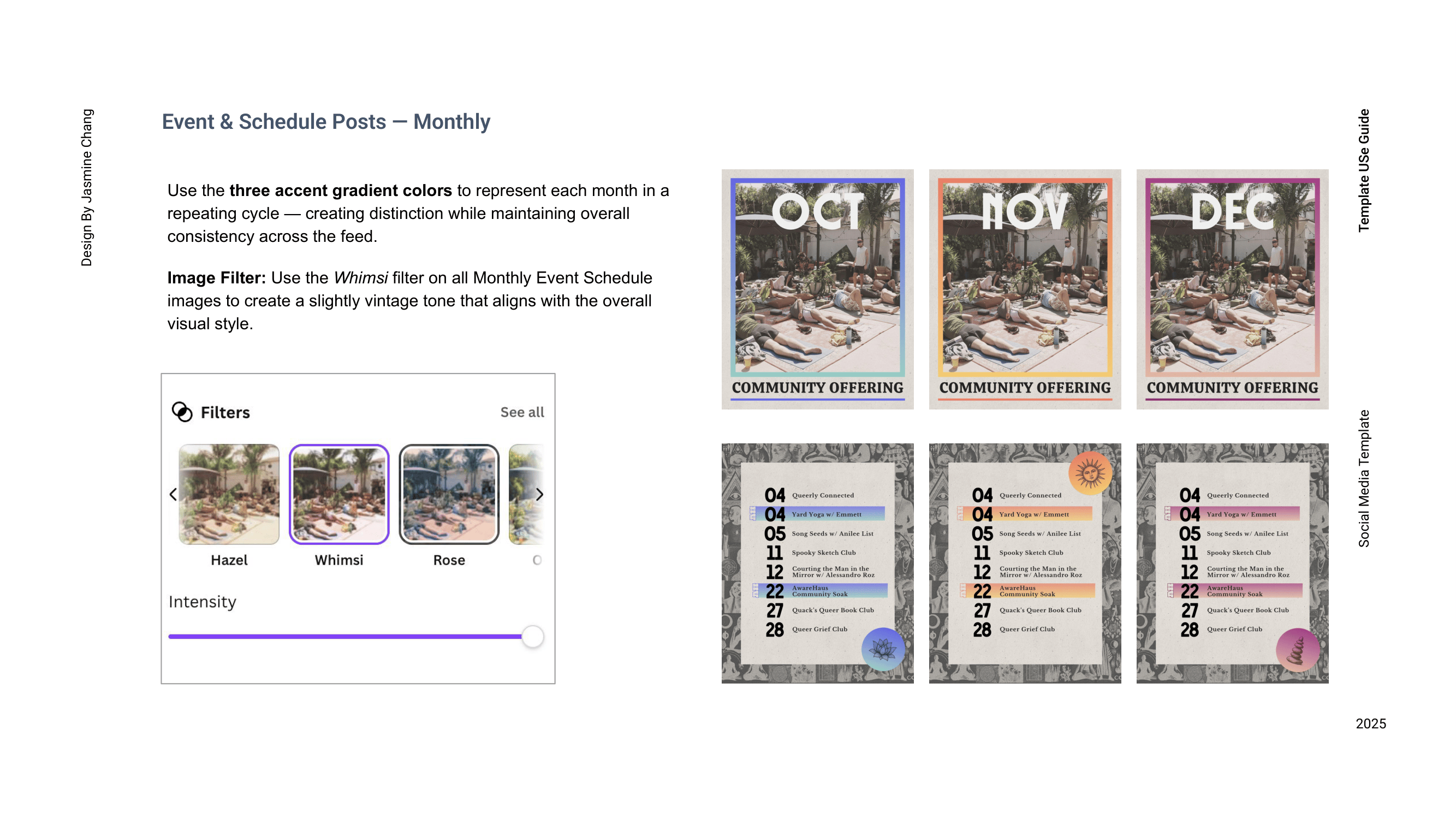 AwareHaus is a queer community space centered on care, connection, and collective healing. As the organization introduced a newly developed design system, the team faced challenges translating established brand elements—such as color, typography, and texture—into consistent social media communication. This project aimed to create a cohesive template system that supports AwareHaus in sharing events, schedules, and community offerings with clarity, warmth, and visual continuity across platforms.
