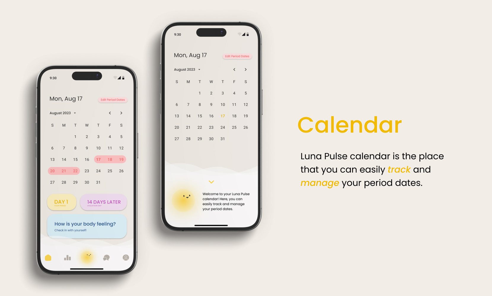 Luna Pulse is a UX/UI project that reimagines the period tracker experience through a user-centric and emotionally intuitive design. It prioritizes comfort, accessibility, and clarity, transforming health tracking into an effortless, stress-free routine. The app integrates thoughtful design elements to provide a seamless and supportive experience for users managing their cycles and overall wellness.
